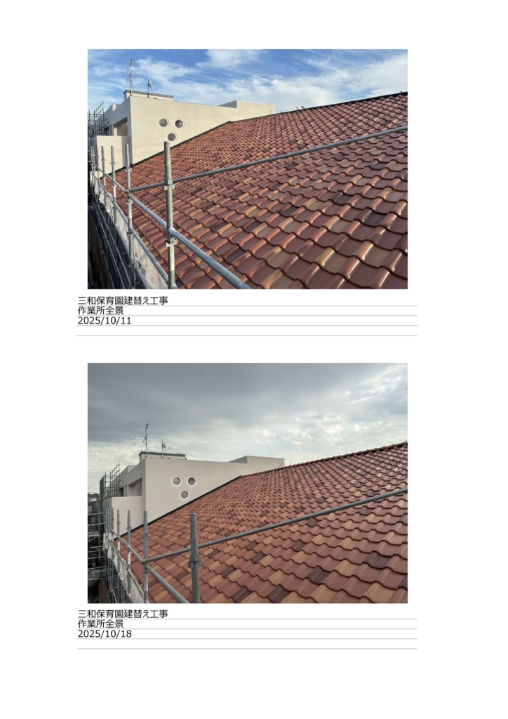 内装工事はボード貼り及び木製建具取付、外装工事は瓦屋根及び外壁塗装が完了し、随時足場解体を行っています。次第に外観が出来上がっています!