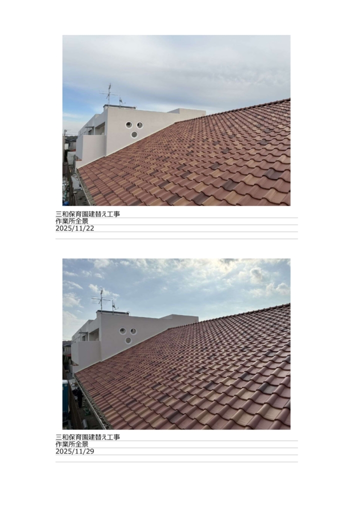 内装工事はボード貼り及び木製建具取付、外装工事は瓦屋根及び外壁塗装が完了し、随時足場解体を行っています。次第に外観が出来上がっています!