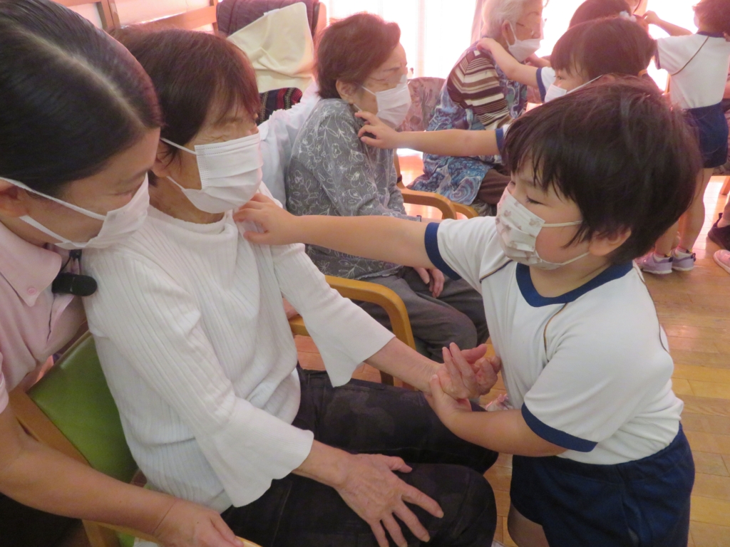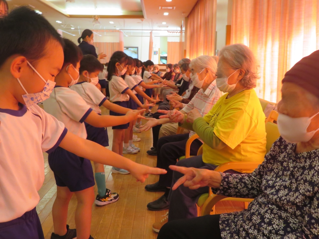 ふれあい遊びやわらべうたも楽しみ、「可愛い💓」「10歳元気になった💪」と、おじいちゃん、おばあちゃん方にもすごく喜んでいただきました😊