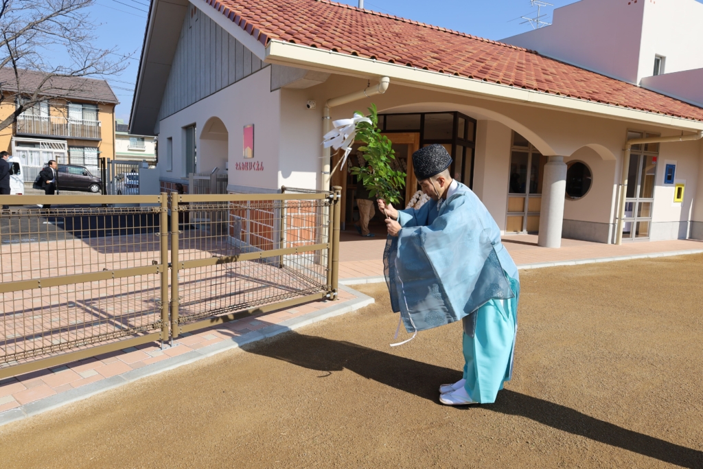 当日は、関係者の皆さまにご出席いただき、晴れやかな雰囲気の中、新園舎の完成を無事に迎えられたことへの感謝と、今後の安全と発展を祈念いたしました。新しい園舎は、子どもたちがより安心して過ごせる環境を第一に考え、明るく開放的な空間となっています。
